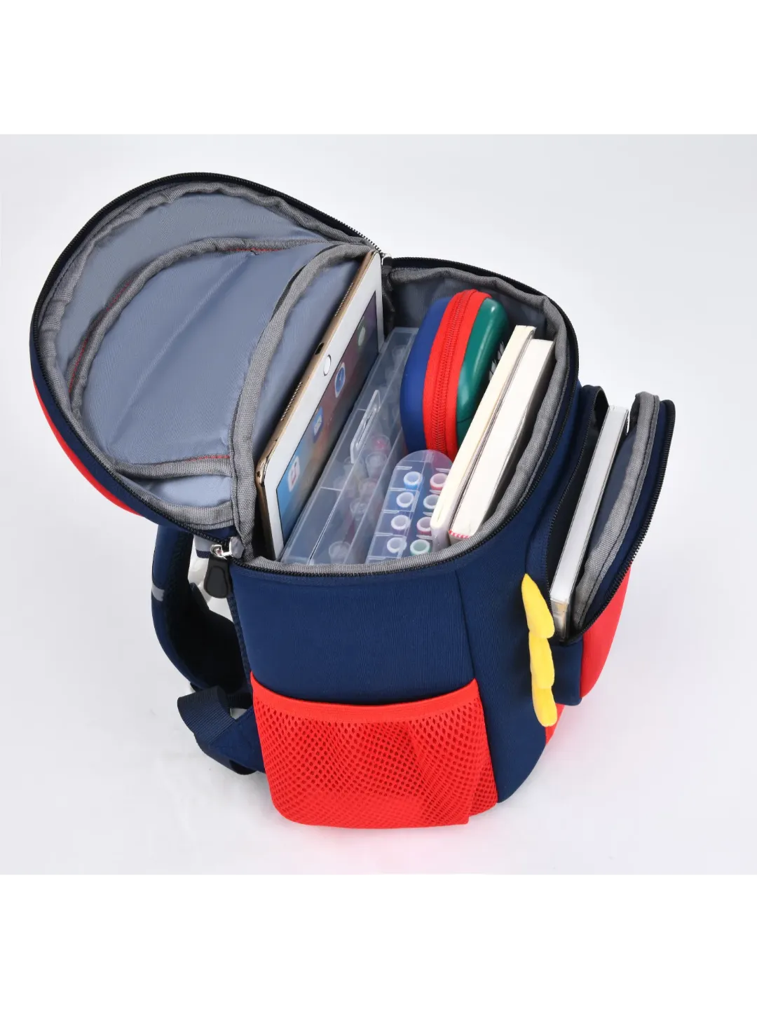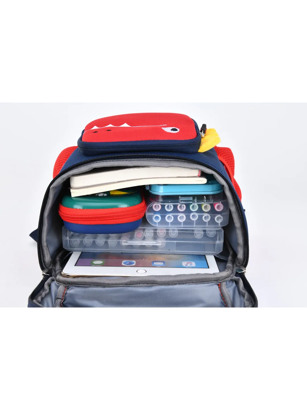 Fuel your little explorer’s imagination with the Dino Roar Kids Backpack. This charming red and navy design features a playful dinosaur face with 3D spikes and a toothy grin, making it perfect for preschoolers and toddlers. Designed with safety, storage, and style in mind, it’s ideal for everyday school use, outings, or daycare adventures.