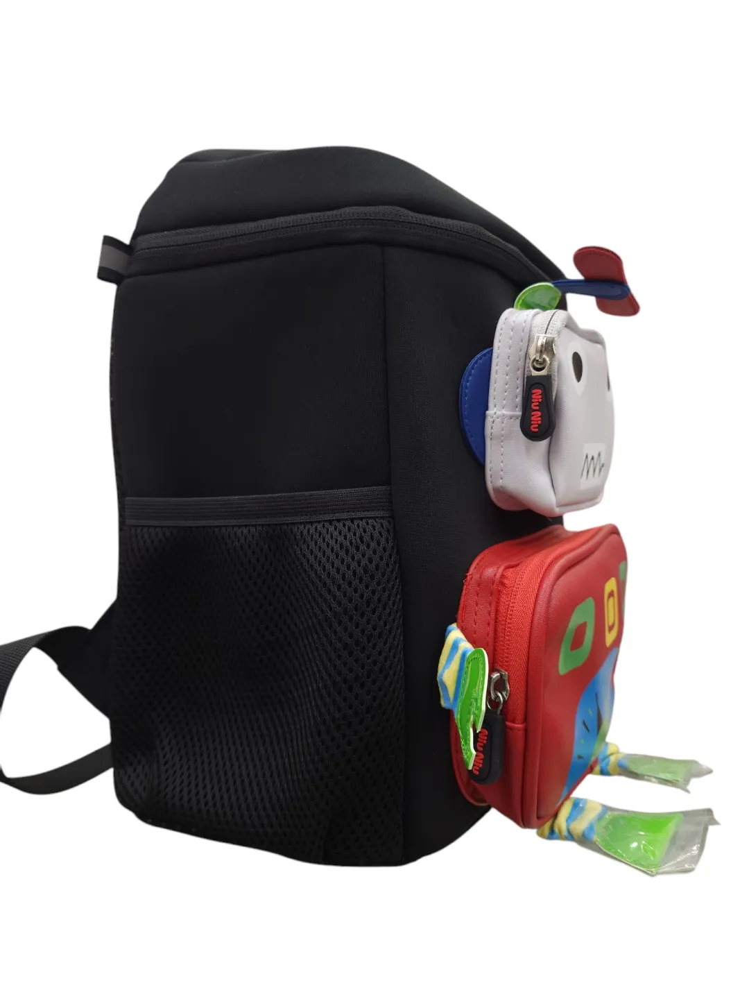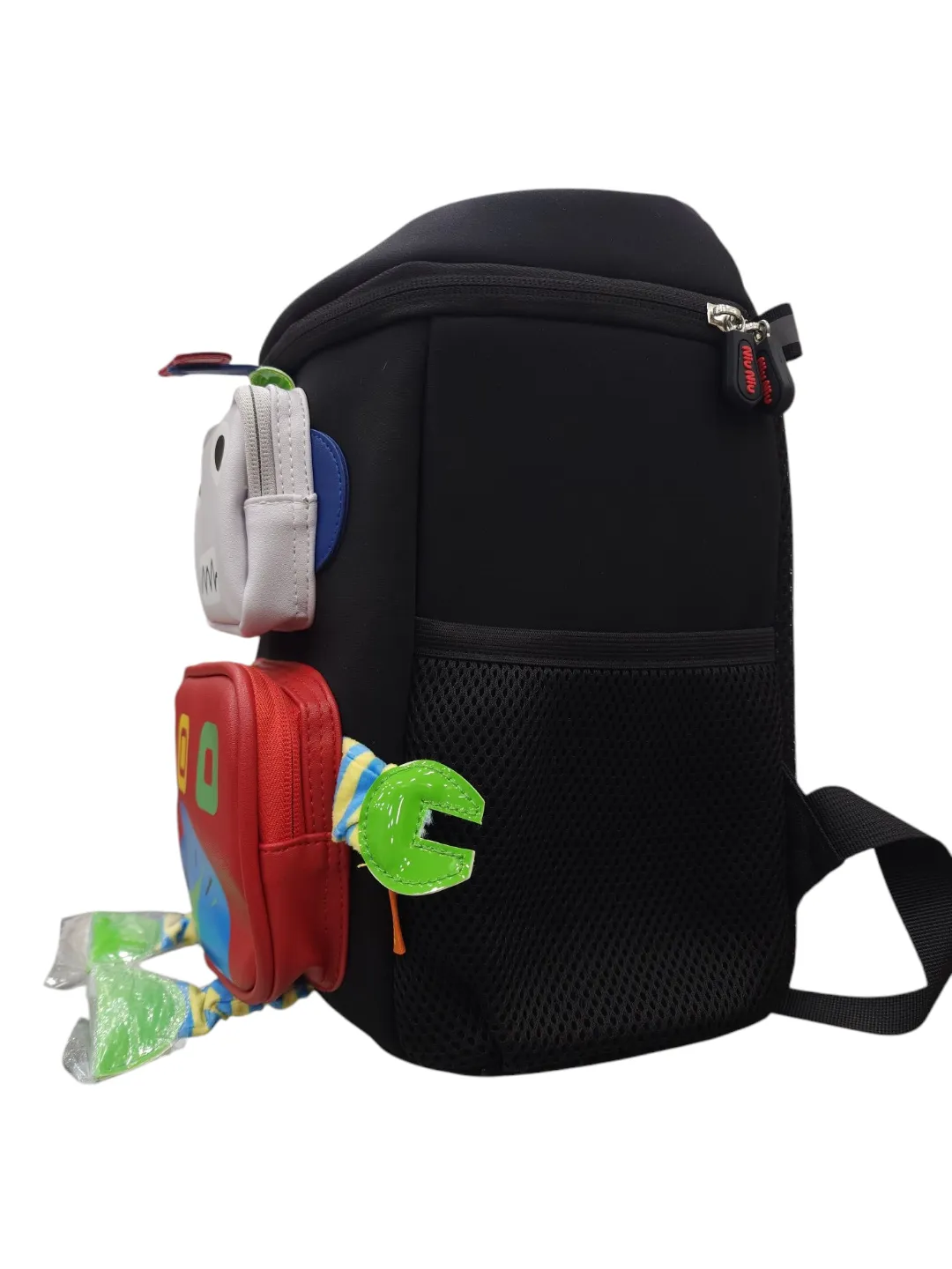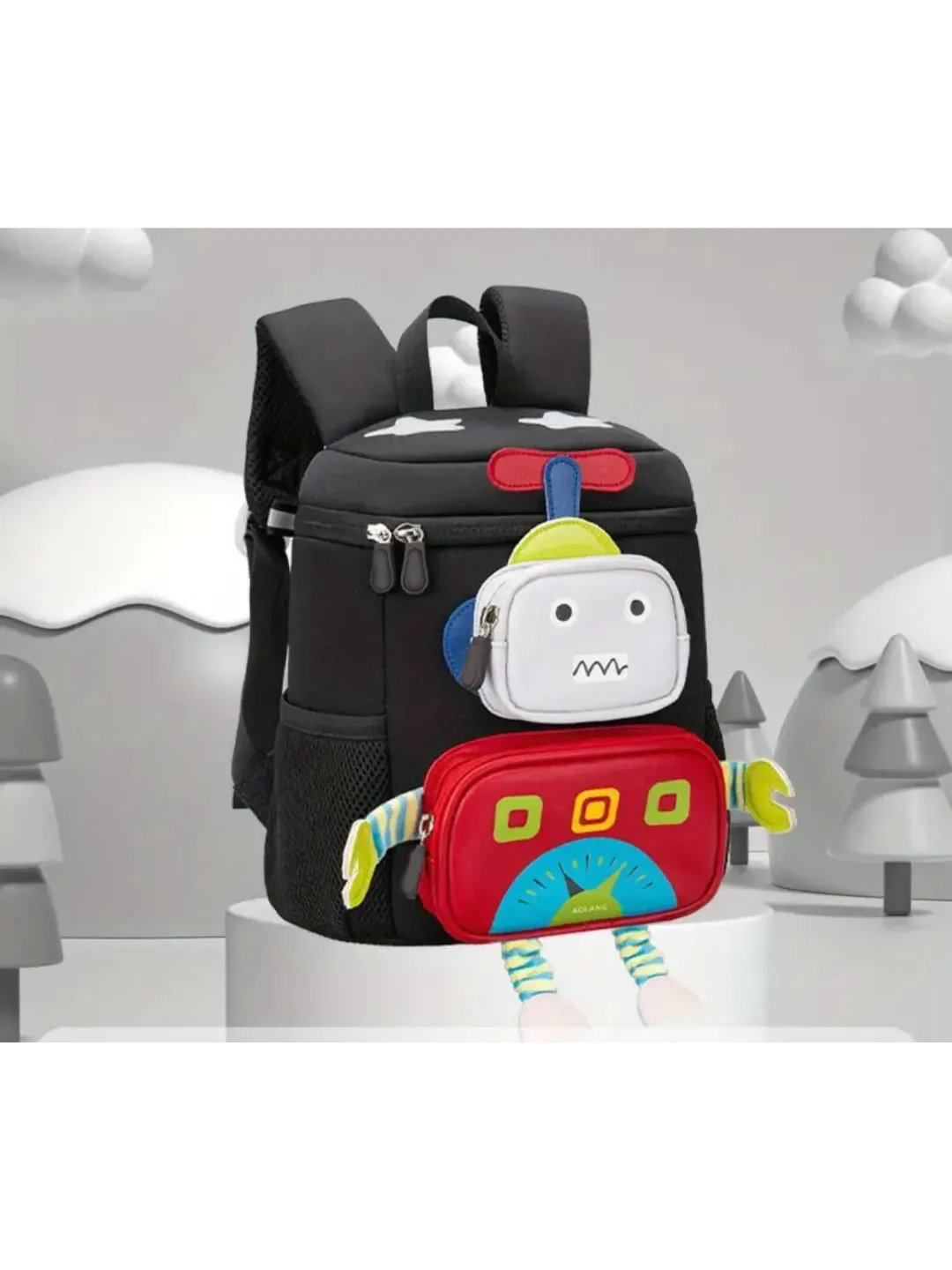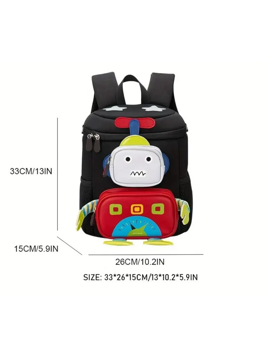 Designed to captivate young minds, this adorable robot-themed backpack is the perfect companion for your child’s school or play adventures. Made from soft yet durable materials, it features an animated robot face and bold, colorful pockets that make organizing fun. With adjustable shoulder straps and an easy-to-carry top handle, it’s ideal for children in preschool or early primary school.