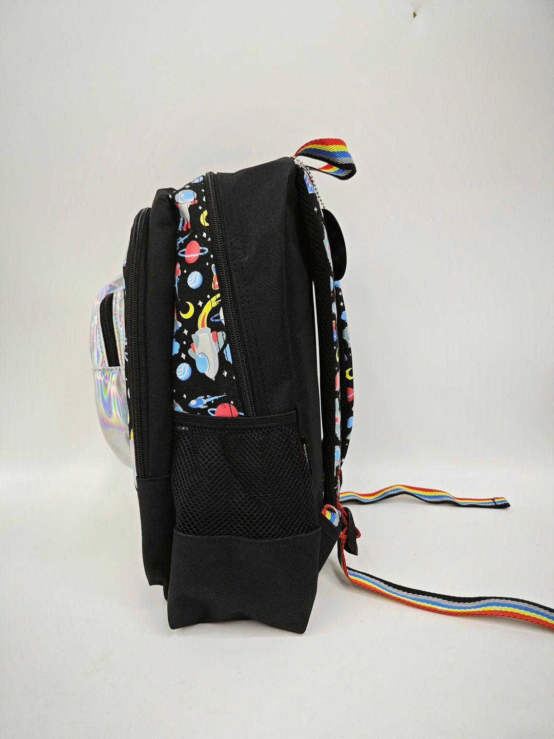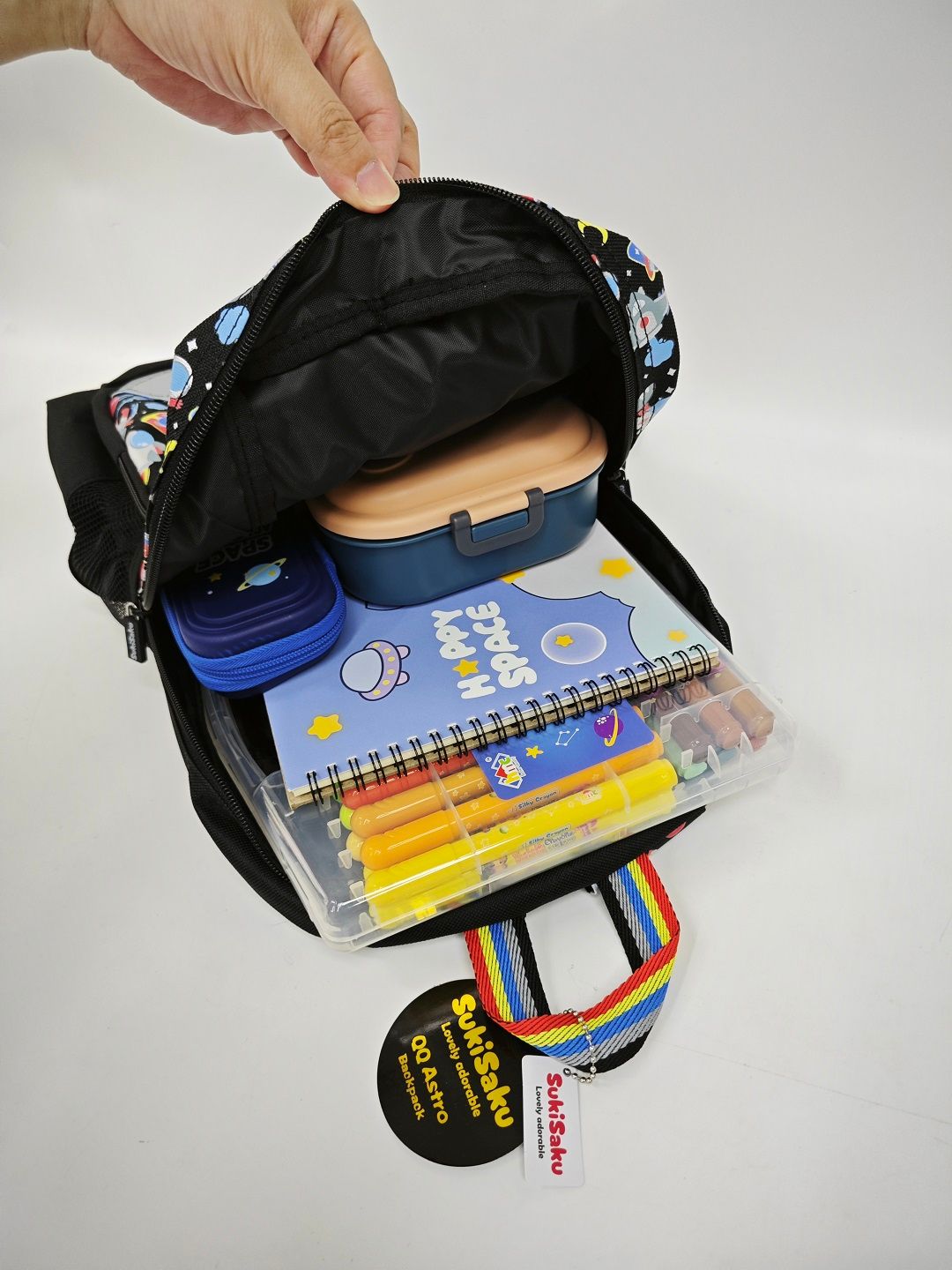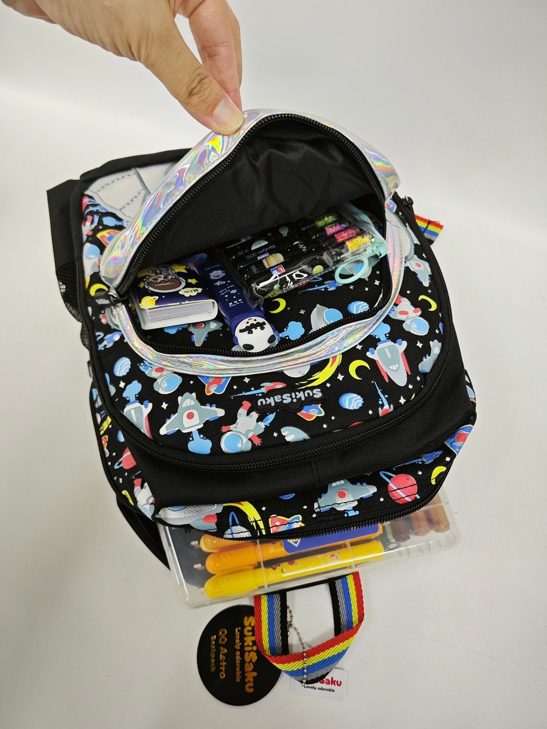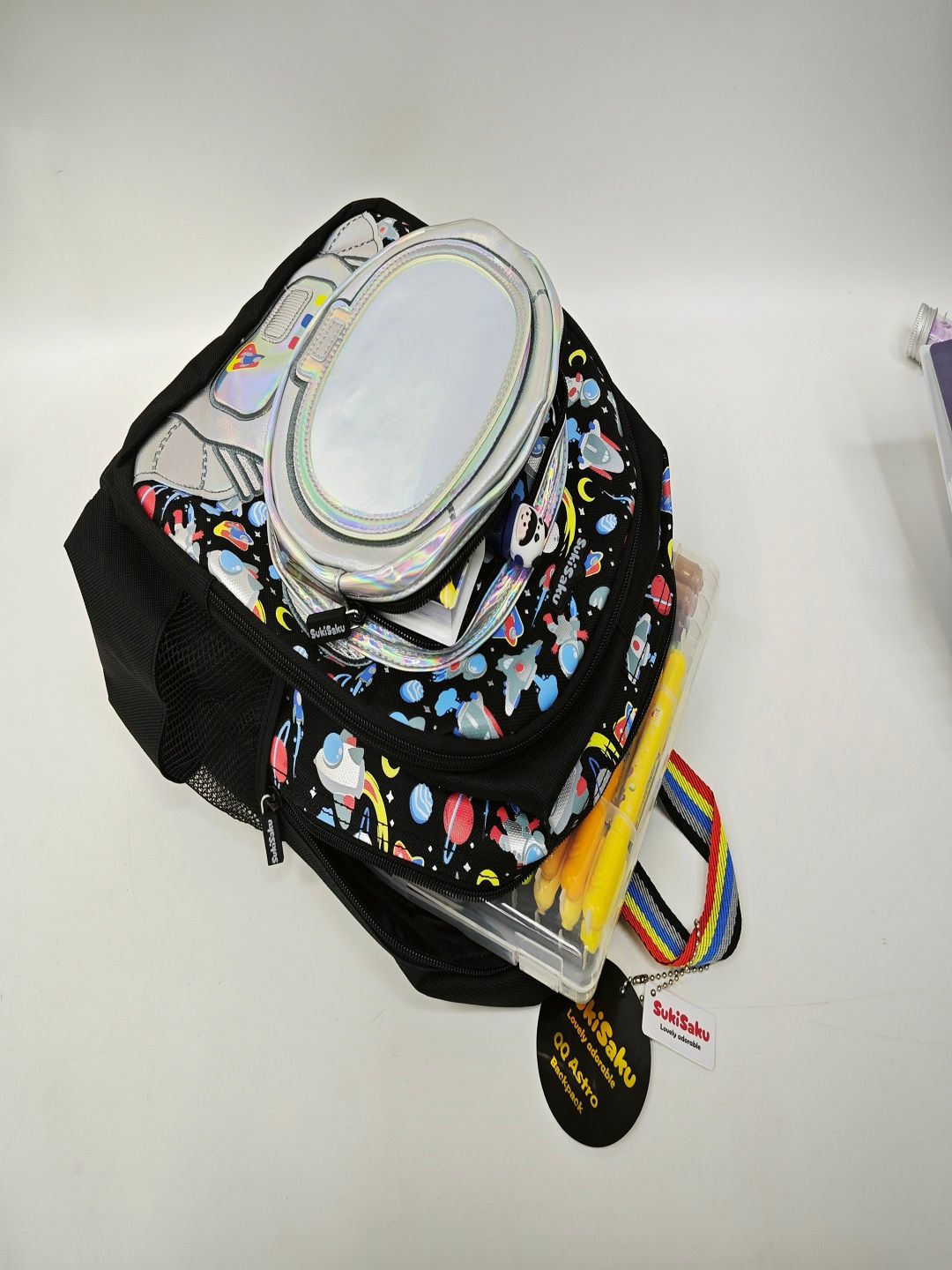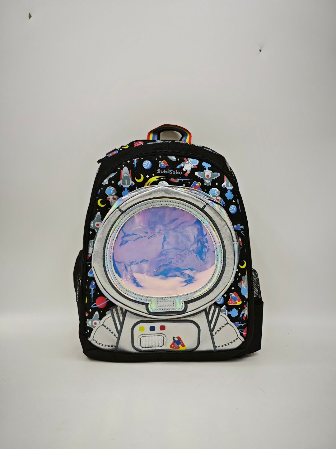 The SukiSaku Astronaut Adventure Backpack features a stunning 3D astronaut suit design with a large iridescent helmet window, perfect for little explorers who dream of space. This backpack turns school days into interstellar missions with its space-themed print and creative structure.